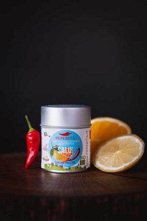 Unser medium scharfes Gewürzsalz mit frischer Orange, Zitrone und Cayenne Chili (30.000 - 50.000 Scoville) ist eine harmonische Kombination aus fruchtiger Frische und angenehmer Schärfe. Die Zitrusnoten von Orange und Zitrone verleihen dem Salz eine erfrischende Note, während die Cayenne Chili eine gute Schärfe beisteuert.