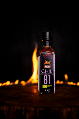 Unser Chili Konzentrat 81 aus frisch gehackten Chilis ist für wahre Chili-Liebhaber. Durch ein spezielles Hack-Verfahren bleibt das intensive natürliche Aroma vollständig erhalten. Da das Konzentrat enorm scharf ist, sollte es nur tröpfchenweise dosiert werden. Es wird mit den schärfsten Chilis hergestellt und verleiht Gemüsepfannen, Fleisch, Fisch, Burger oder Saucen einen feurigen Geschmack. Nach dem Öffnen im Kühlschrank aufbewahren.