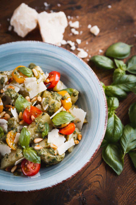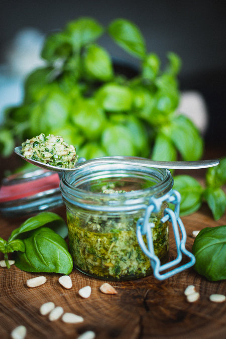 Pesto ist eine ungekochte pastöse Sauce, die in der italienischen Küche meist mit Nudeln vermischt gereicht wird.[…]